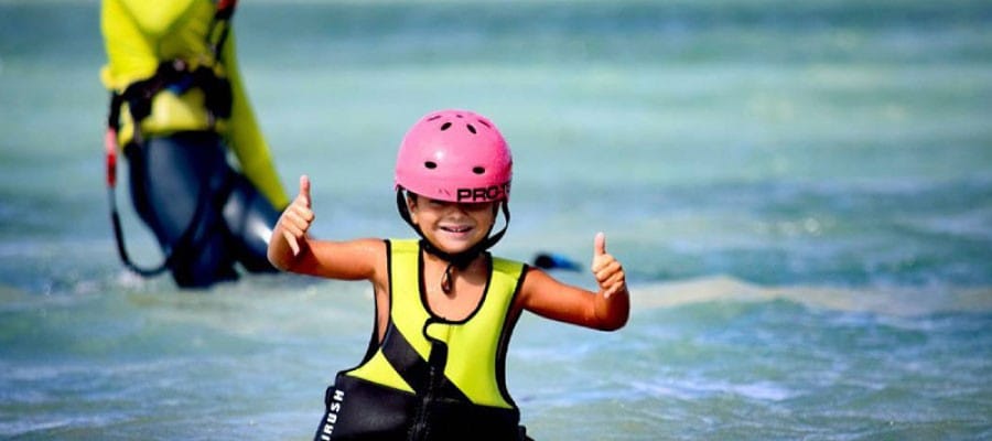 El objetivo es que el niño gane confianza y disfrute mientras descubre el kitesurf.