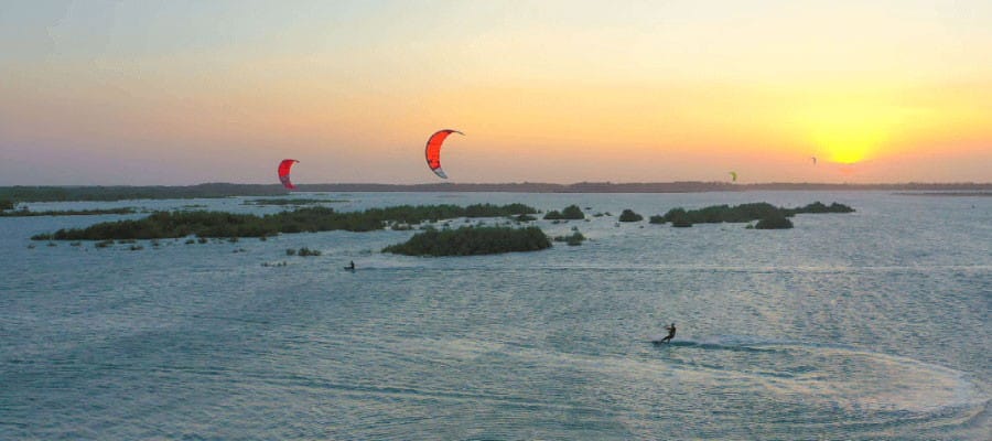 Nos vamos al pintoresco pueblo de Cumbuco, a solo 30 minutos de Fortaleza. Con sus vientos constantes, playas bordeadas de cocoteros y famosas lagunas, es el destino ideal para cualquier kitesurfista.
